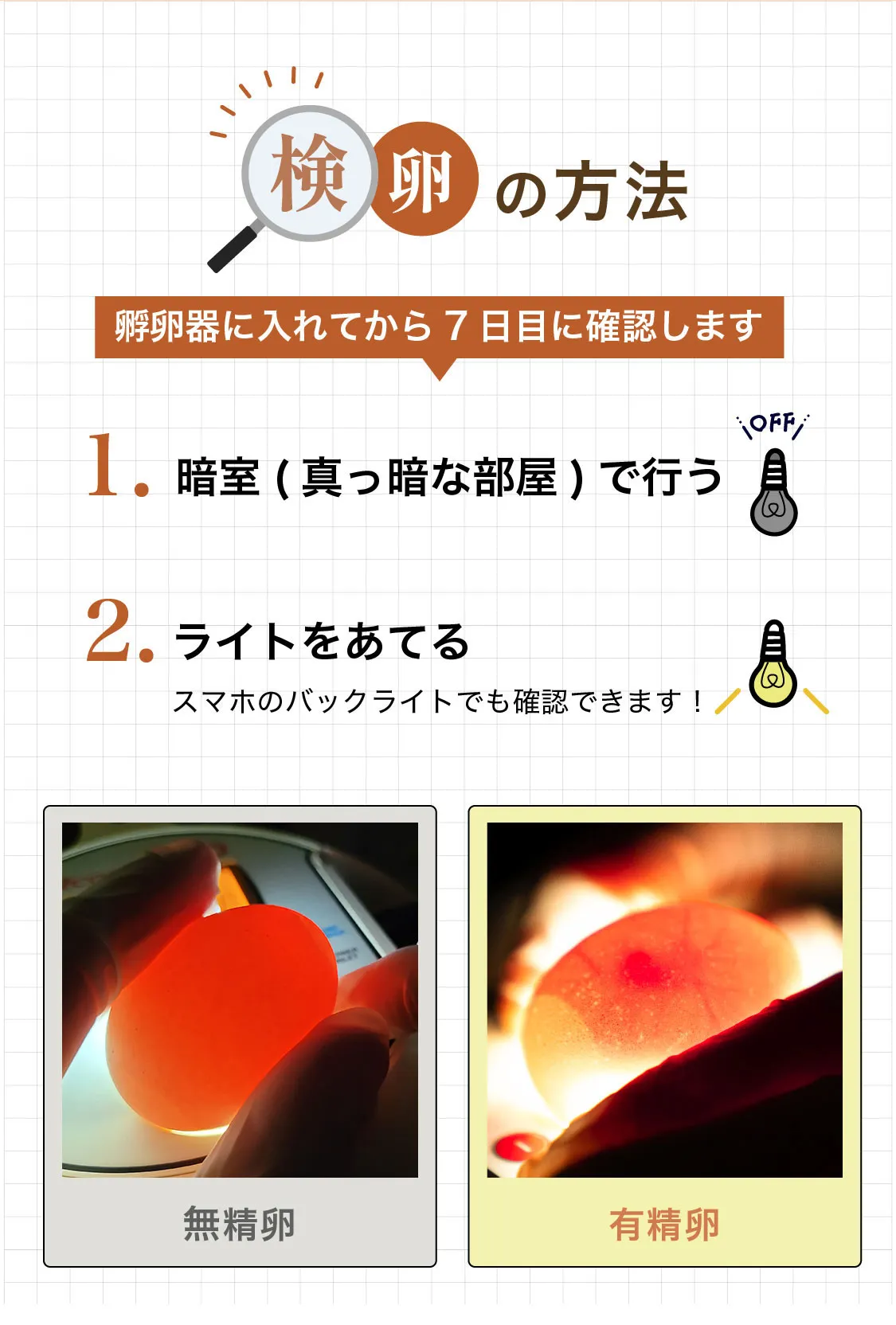 ※受精できていない動画の確認後、有精卵をお送りします。